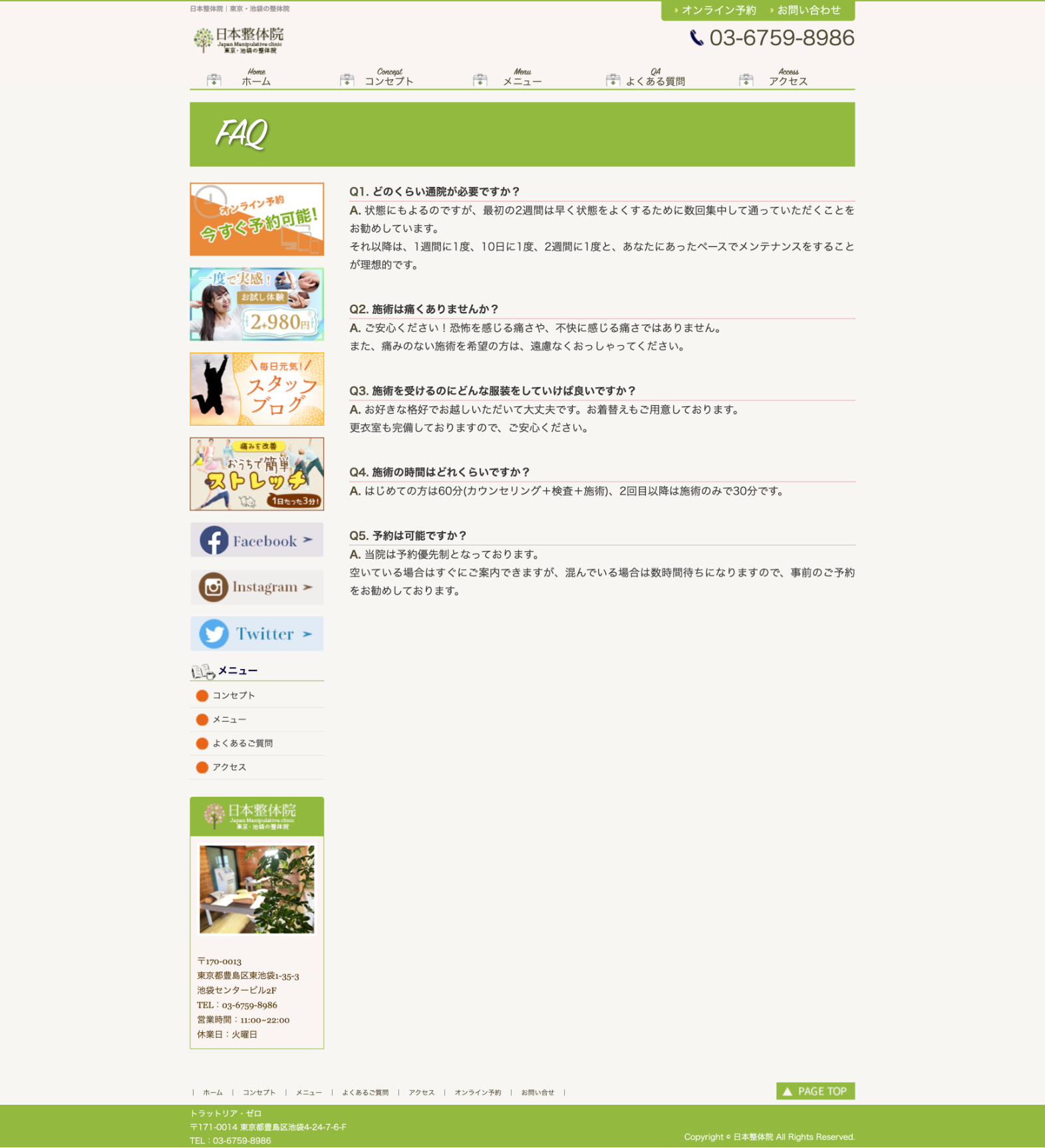 日本整体院お問合せ