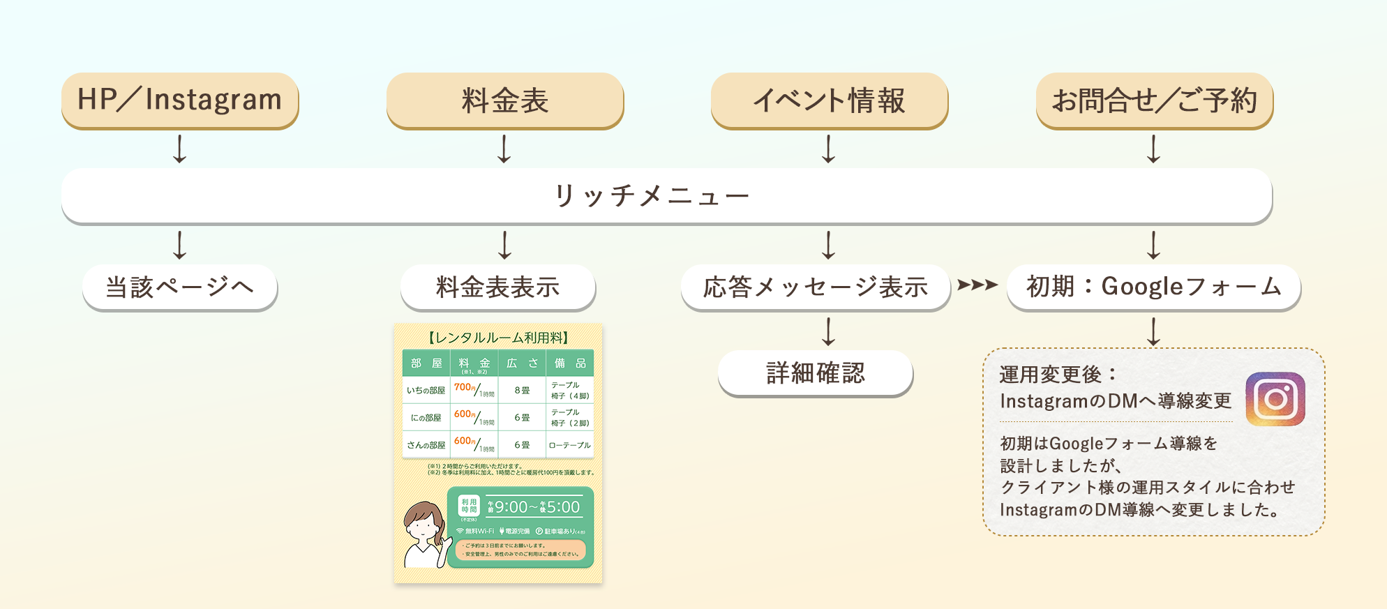 3パターンのリッチメニューをご提案し、使いやすさと親しみやすさを両立しました。